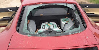 The red Audi R8 is a super car and wrath resulted in the demise of the car.